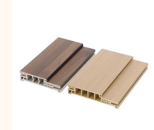 I materiali decorativi in WPC sono costituiti principalmente da fibre vegetali (come segatura, polvere di bambù e bucce di riso) e materiali termoplastici (come PE, PP e PVC). Questi due materiali vengono estrusi mediante miscelazione ad alta temperatura utilizzando tecniche di lavorazione specializzate. Questo materiale combina la struttura e il colore del legno naturale superando i difetti intrinseci del legno tradizionale, come marciume, screpolature e deformazioni, con conseguente maggiore stabilità e applicabilità.